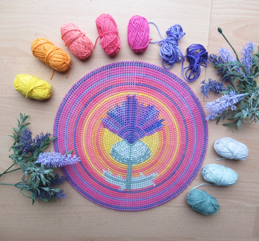Does anyone else have a pile of projects they tackle on and off for months? For me, this plastic canvas thistle has been one of those. I had never done any plastic canvas crafts before but saw some in a local craft shop and could not resist! I immediately went home to pinterest and had a hunt for some design inspiration. Now, I have to say, a lot of what comes up if you search for plastic canvas projects is in the so-bad-it’s-good category. I could browse the wide range of retro-fabulous patterns with their super saturated photographs all day, I really could. Below are some favourites I found online!