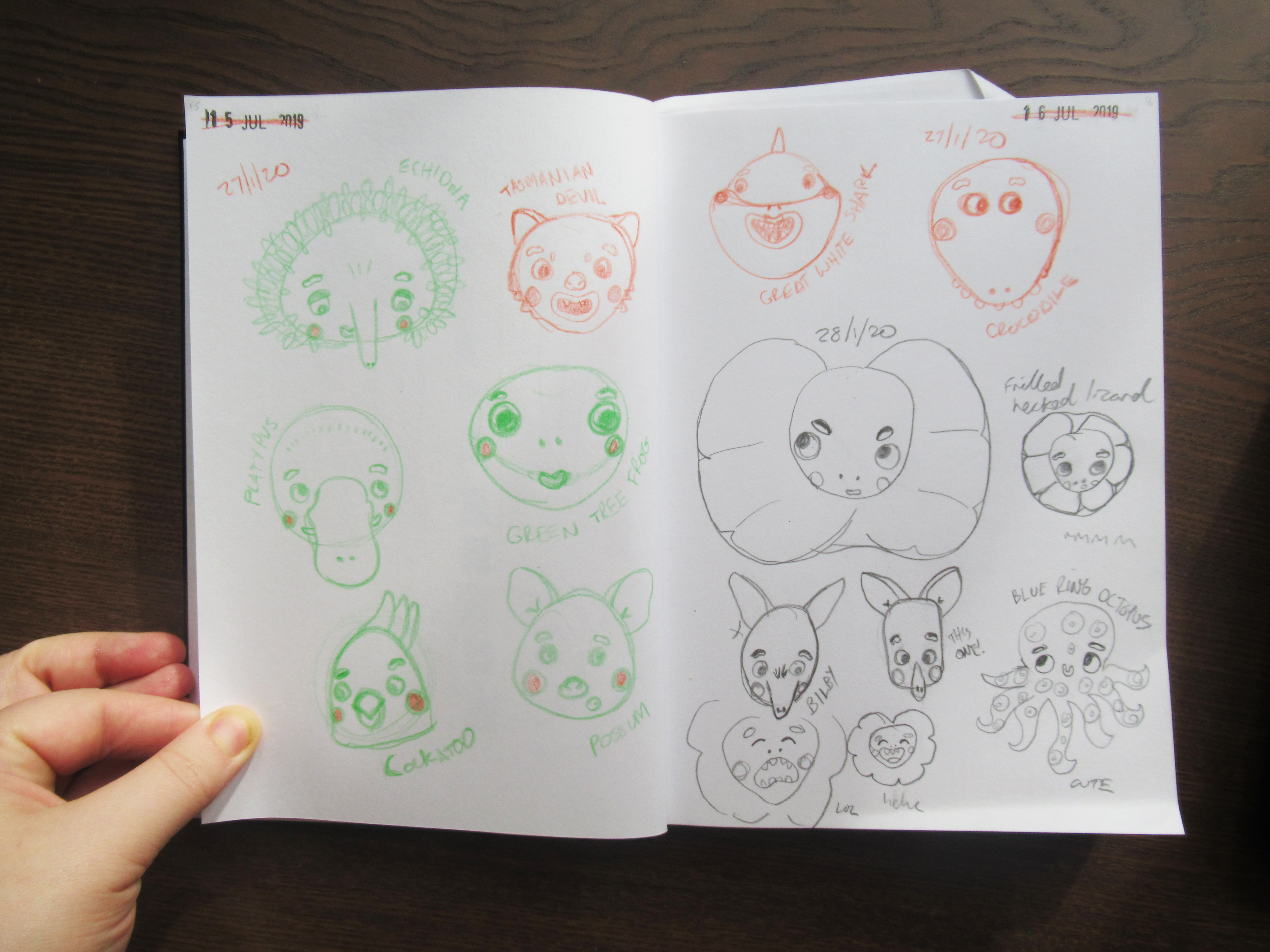 Now, I haven’t worked much with polymer clay and not for a few years but thought it might be possible to put together some cute pieces to raise funds. After doing some little sketches (see my especially special creatures below) I got started!