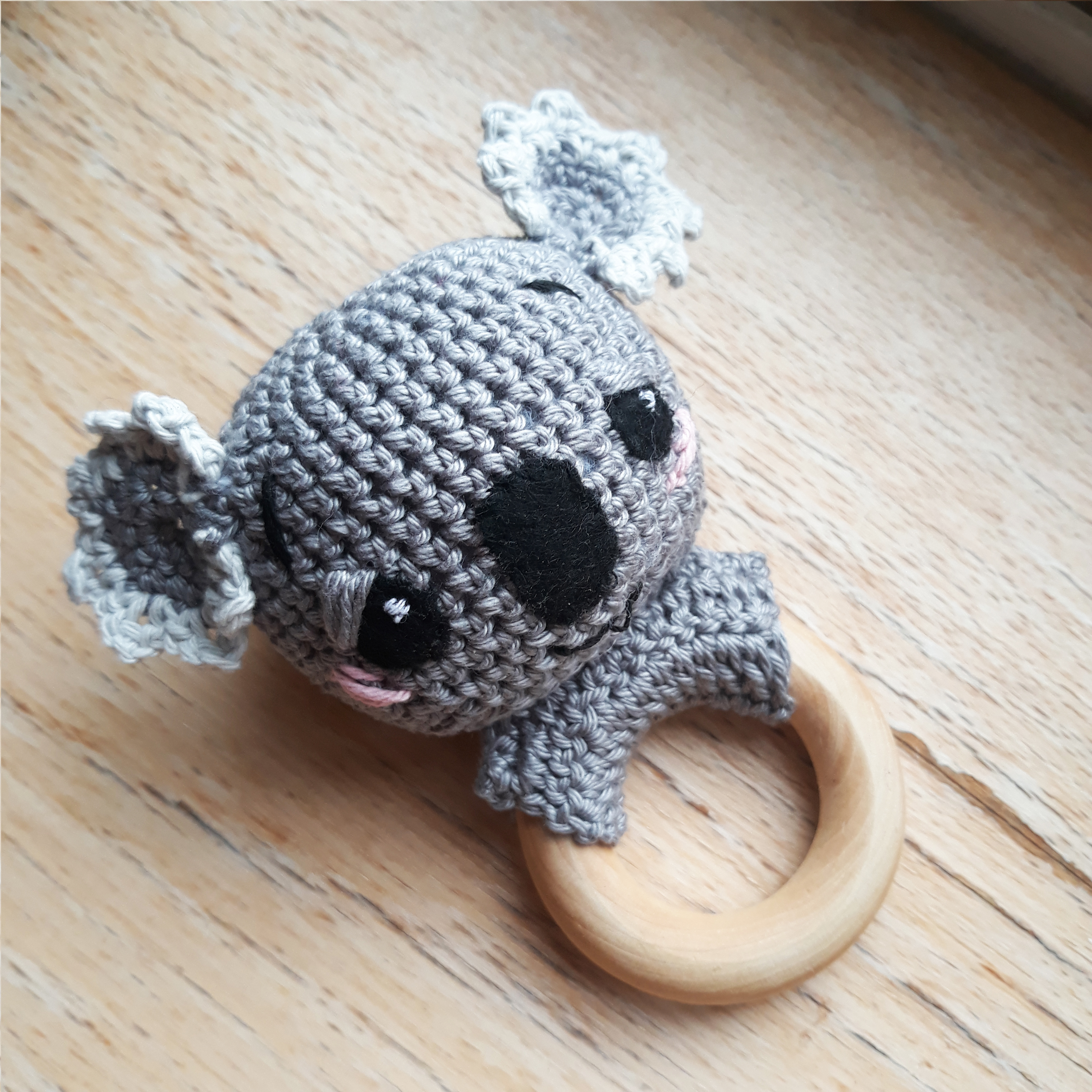 Along with my cute (even if I do say so myself) polymer clay creations, I have been brainstorming other crafty goodies to make to raise some money for the bushfire relief effort in my home country of Australia. It needed to be something relatively small, affordable, and quick to make so that the cost I could sell it for would outway the cost of my time and materials. Now, I also have to admit I had had my eye on some cute crochet teething rings and might have been looking for an excuse to try and make one! But when I saw some wooden rings at Pipoos here in the Netherlands (I swear I was buying craft supplies for my craft group), I couldn’t resist.