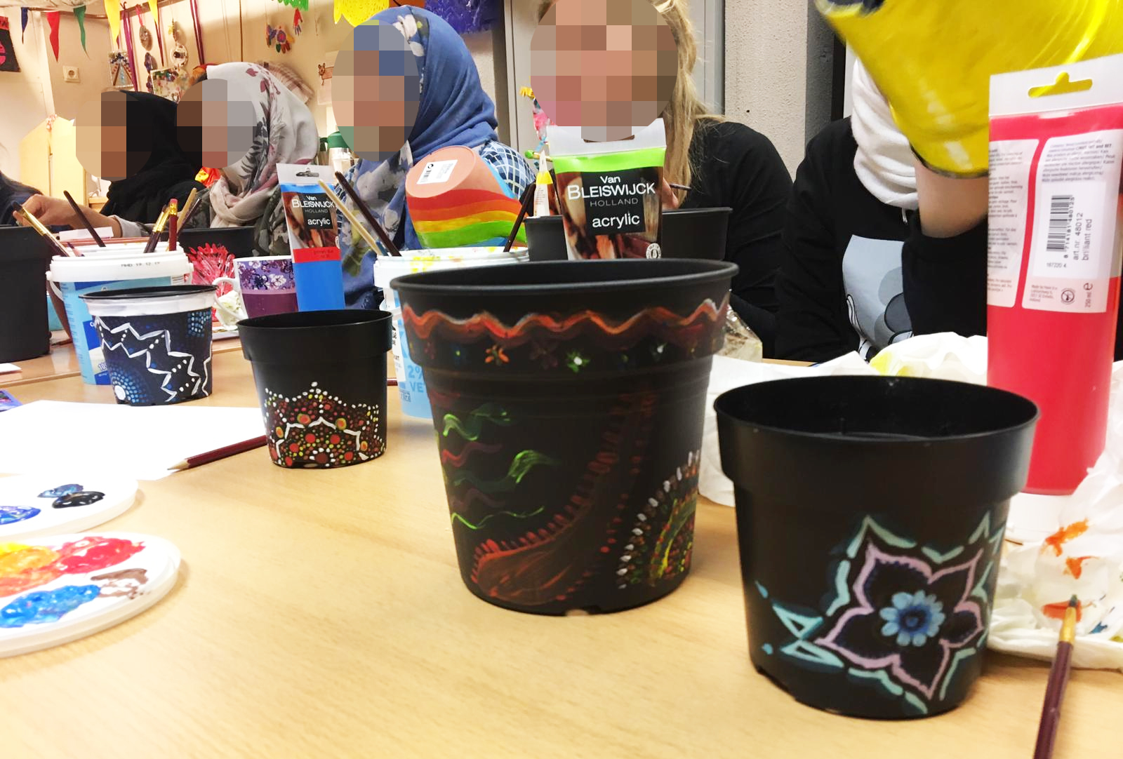 I think this craft group had the most refugee (adult) participants of any so far! Almost all were familiar faces as well so it’s great that people are enjoying the group enough to come back – I mean, that’s the main goal, really! We had a really lovely time painting together, chatting and relaxing. If you need a nice easy project for yourself or your craft group, I would definitely recommend this as a breather from more challenging crafts.