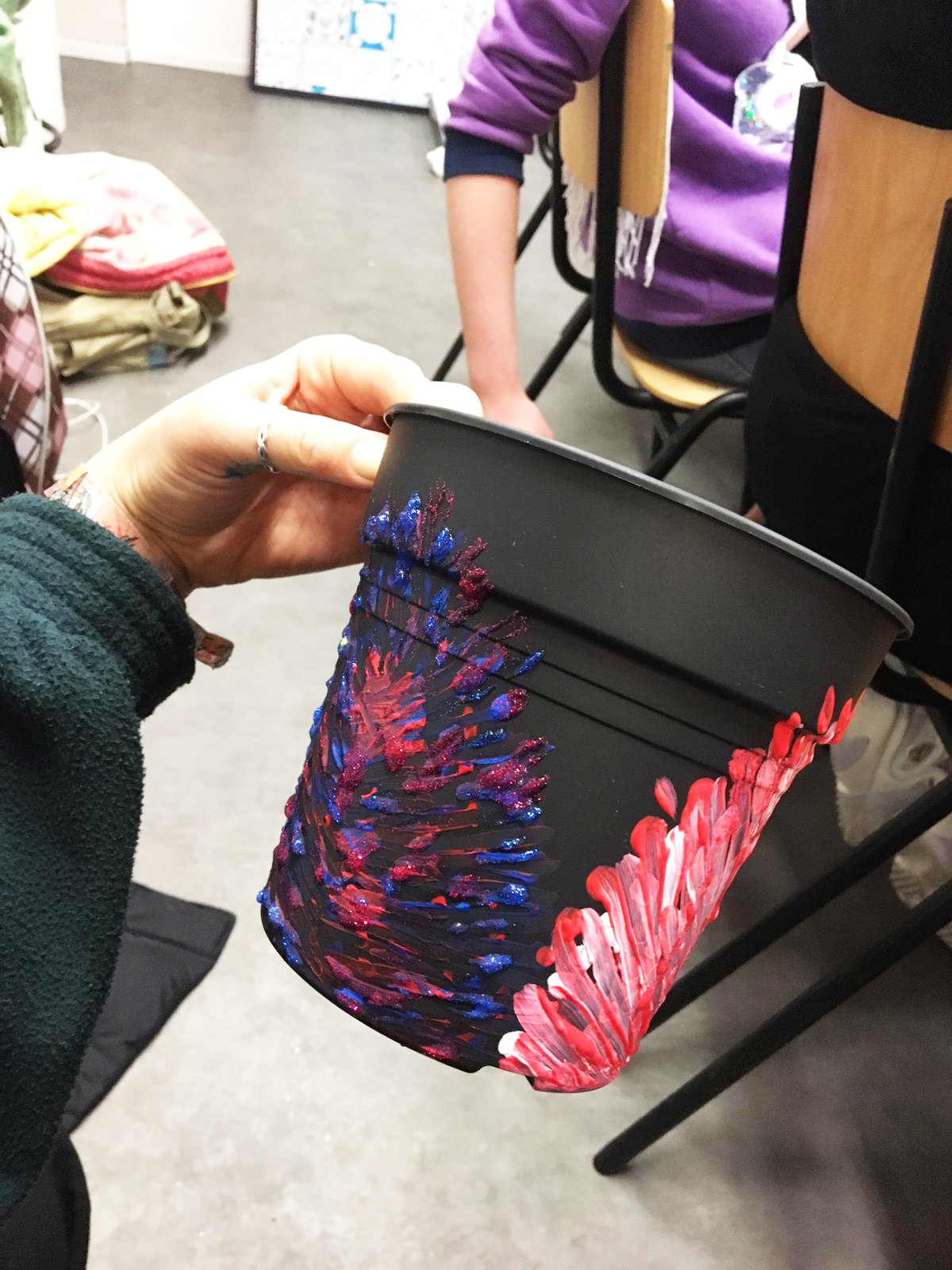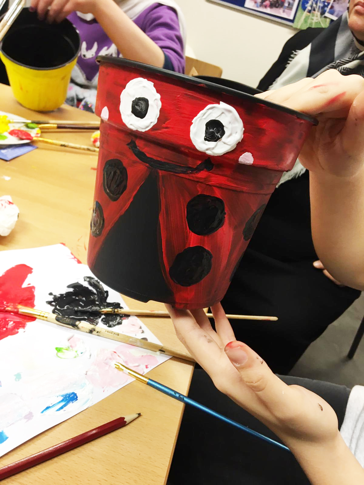 As I said, this project was an easy last minute craft that we were able to organise at short notice. The plan was very loose as a result and, as I’m learning, this works quite well with certain crafts! I brought paper and pencils so that if people did want to sketch out their designs first I could facilitate that but did anticipate that we would mostly just paint together.