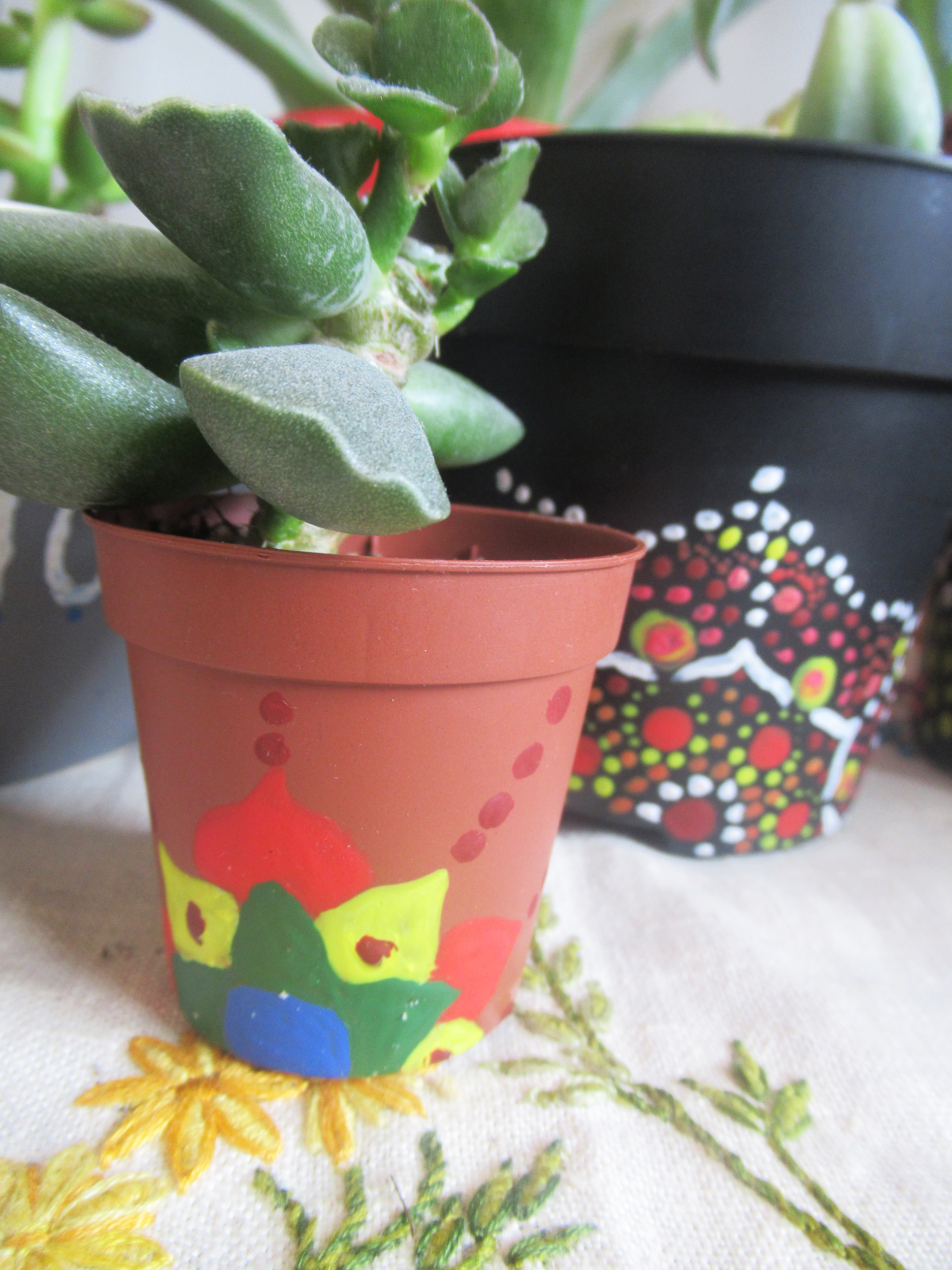 - Use acrylic paints to decorate a plant pot