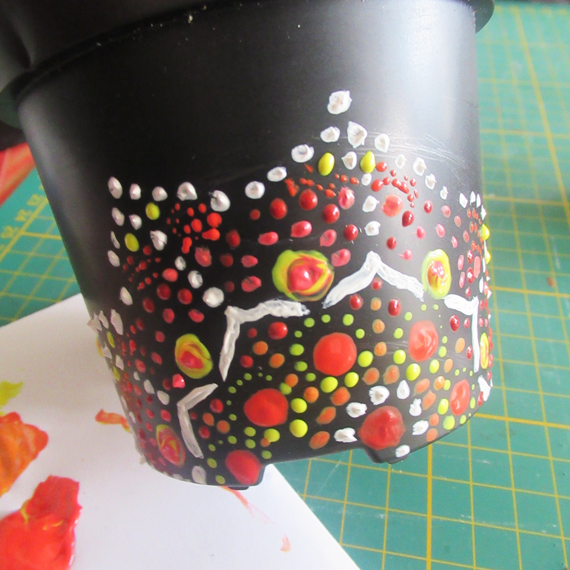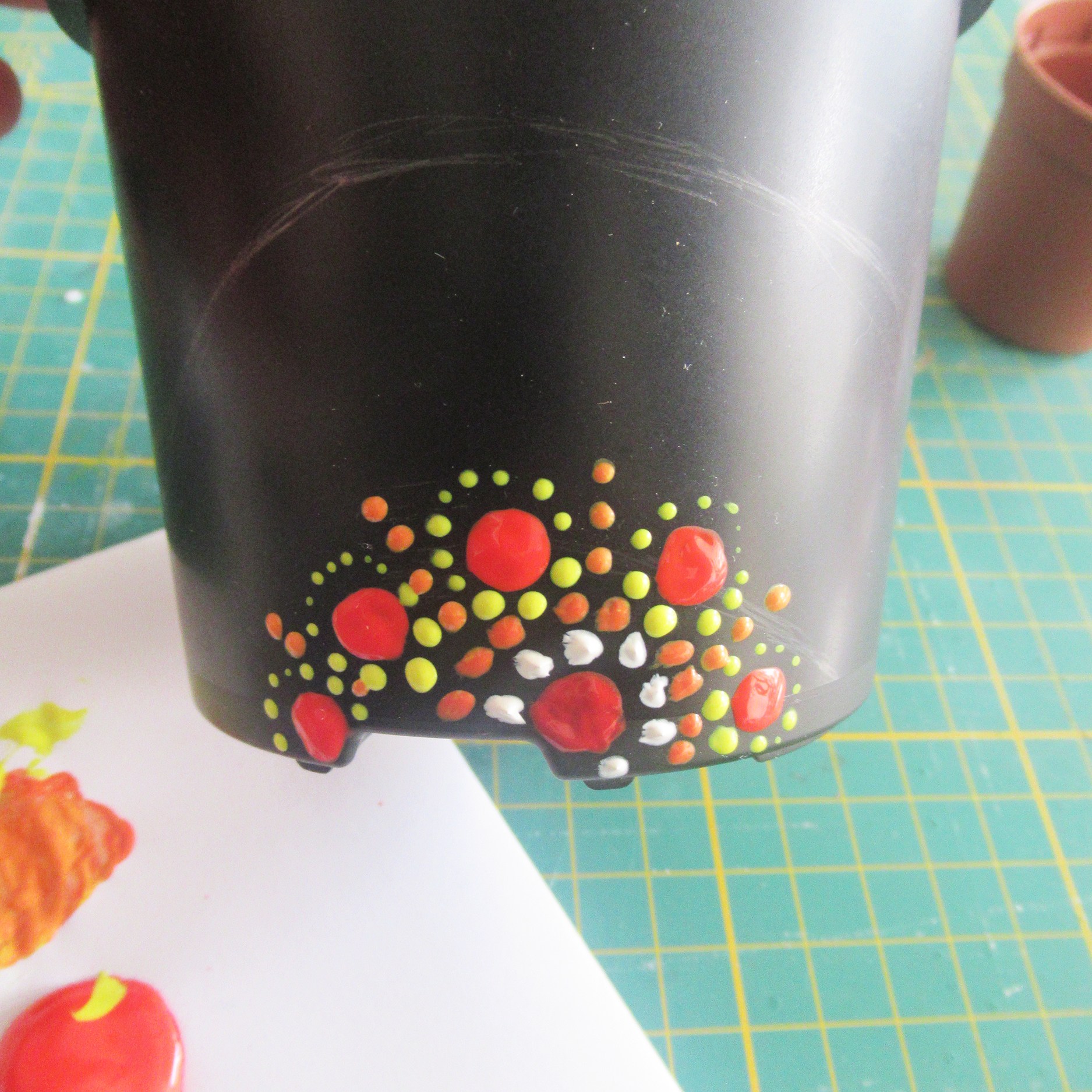 - Create a dot mandala pattern on a plant pot