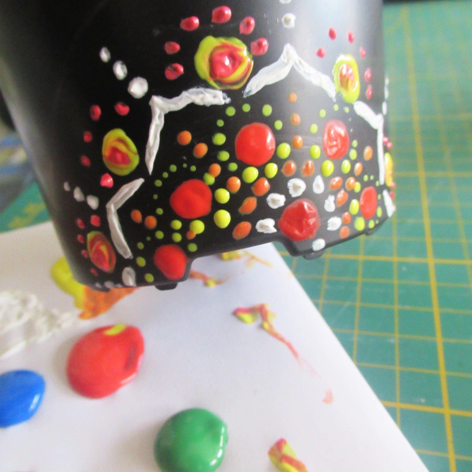 If you want to get fancy with your dotting techniques you can also try out a dotting tool, often used by nail or clay artists! There are plenty online like these ones I found after a quick search. I think you could probably use the end of a paint brush instead or go crazy and try a crochet hook or knitting needle. If you try either of these let me know how you get on!